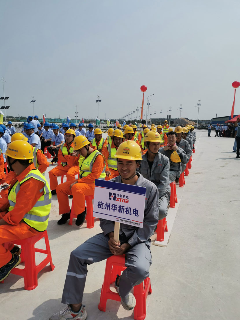 該項目于2019年10月簽訂合同,于2019年12月開工生產(chǎn)制造,原計劃于2020年7月交機,但由于期間疫情的影響,給生產(chǎn)制造及整個項目的外協(xié)廠家都帶來很多難題。在此期間,公司積極與用戶進行溝通協(xié)調(diào),督促外協(xié)廠家合理安排工序,以彌補因疫情影響的工期;同時,華新機電無錫制造基地及時調(diào)整了工作計劃,加班加點趕制本項目的結(jié)構(gòu)件;現(xiàn)場安裝隊更是與時間賽跑,為了保證工程節(jié)點,在確保安全的前提下,提出“大雨小干,小雨大干,天好加勁干”的口號,白天埋頭苦干,晚上加班施工,“5+2”,“白加黑”是他們的工作常態(tài)。