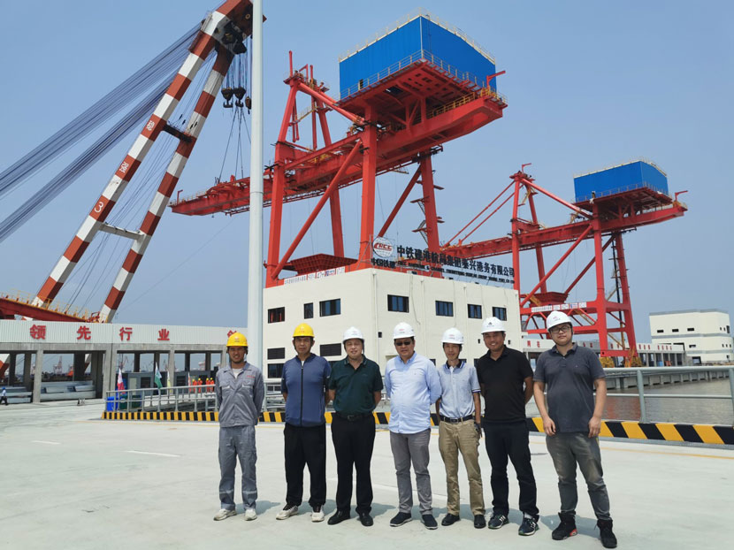 6月30日,杭州華新機電工程有限公司為中鐵建港航局泰興港務(wù)有限公司建造的2臺1500t/h卸船機在港區(qū)1號泊位順利完成第二臺前大梁吊裝,標(biāo)志著為期8天的大件吊裝圓滿結(jié)束,階段收尾后將進入設(shè)備調(diào)試階段。本次吊裝滿足了業(yè)主“首船靠泊試機儀式”的時間節(jié)點要求,得到業(yè)主高度贊揚。