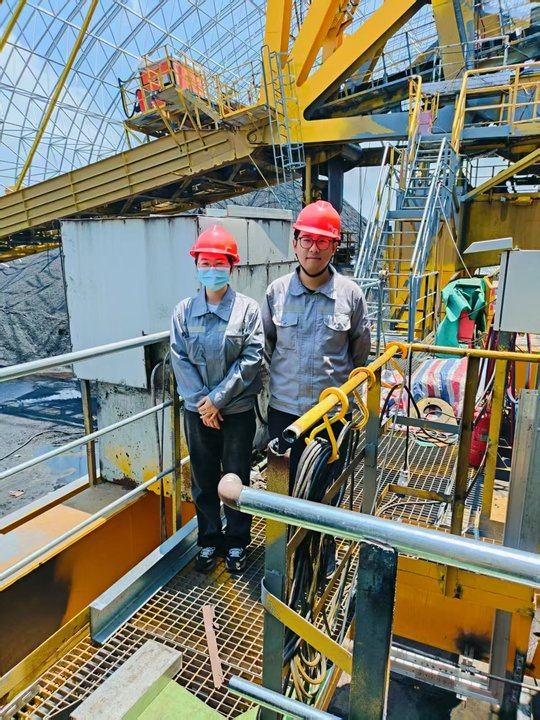 印尼賓坦卸船機項目組全體成員堅決落實工作部署,堅守項目一線,連續(xù)奮戰(zhàn)130多個工作日。在針對設(shè)備滾裝上岸關(guān)鍵節(jié)點,項目團隊科學制定預案,嚴格落實責任分工,全力保障設(shè)備交付任務(wù)如期完成。這個端午節(jié),張橋、石中金等項目組同志主動放棄休假,嚴格按技術(shù)規(guī)范完成整機現(xiàn)場精準調(diào)試工作,為設(shè)備試運行提供堅實技術(shù)保障。