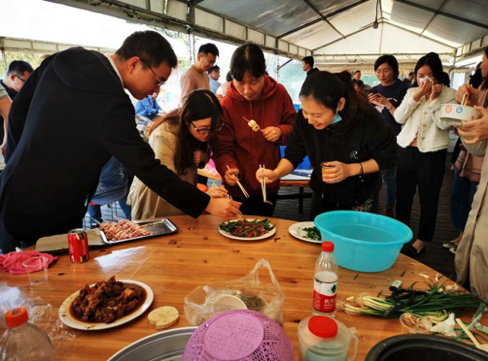不一會(huì)兒,在團(tuán)隊(duì)協(xié)作下,燒烤和大鍋菜的香味陣陣撲鼻而來(lái),你一塊我一塊,大家的午餐就這樣開(kāi)始。大快朵頤之后,無(wú)論是新來(lái)的小伙伴還是老員工,已經(jīng)打成一片,同事間的情誼在歡聲笑語(yǔ)和縷縷炊煙中逐漸升華。
