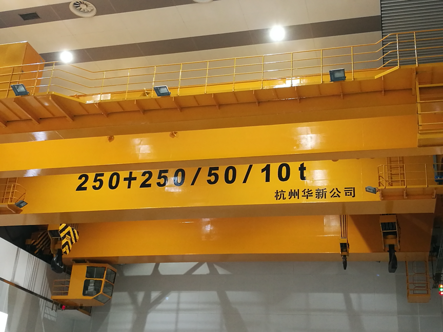 公司設(shè)計(jì)制造的所有橋機(jī)及門機(jī)的起升小車系消化吸收國外先進(jìn)技術(shù),結(jié)合我國當(dāng)時(shí)的配套水平,綜合研究院多年的技術(shù)研制經(jīng)驗(yàn),遵照GB/T3811-2008《起重機(jī)設(shè)計(jì)規(guī)范》、GB/T14405-2011《通用橋式起重機(jī)》等標(biāo)準(zhǔn),同時(shí)參照國外有關(guān)起重機(jī)標(biāo)準(zhǔn)及歐洲搬運(yùn)協(xié)會(huì)主流橋式起重機(jī)機(jī)型研制而成,節(jié)能減排,經(jīng)濟(jì)環(huán)保,特別適合地下廠房、新型工廠及大噸位貴重物件的吊裝、搬運(yùn)就位工作。公司首臺(tái)臺(tái)橋機(jī)為1990年研發(fā)、1992年投入生產(chǎn)的寧波北侖電廠80/20t橋式起重機(jī),公司首臺(tái)臺(tái)門機(jī)為1994年向富春江發(fā)電廠提供的2×20t尾水門機(jī)。近三十年的發(fā)展,已向國內(nèi)外眾多優(yōu)質(zhì)客戶提供千余臺(tái)橋機(jī)和門機(jī)設(shè)備,是目前業(yè)內(nèi)最先進(jìn)、最成熟的低凈空小車結(jié)構(gòu)。目前制造過的單小車橋機(jī)最大額定起重量為800t,雙小車橋機(jī)最大額定起重量為500t+500t,具備1500噸橋機(jī)的設(shè)計(jì)制造能力;制造過的門式起重機(jī)最大額定起重量為900t的造船龍門吊。